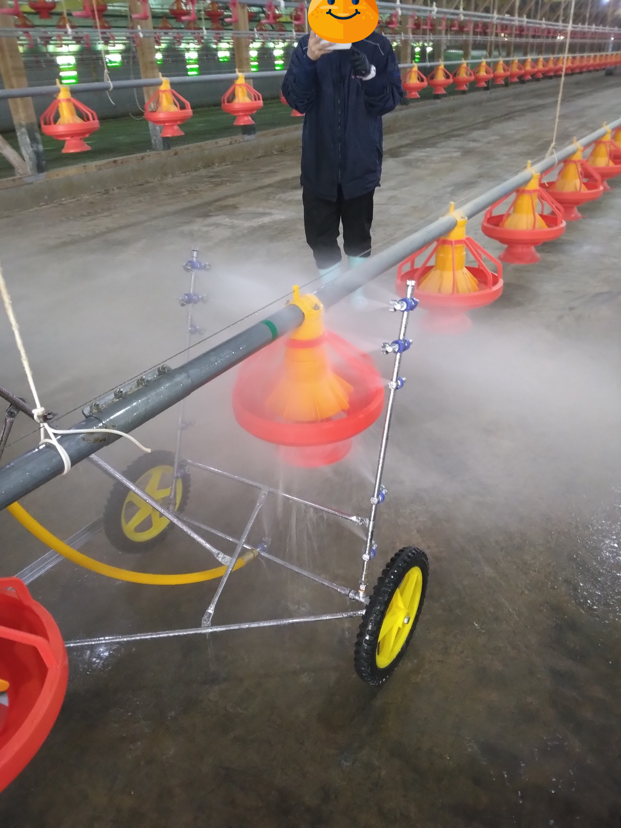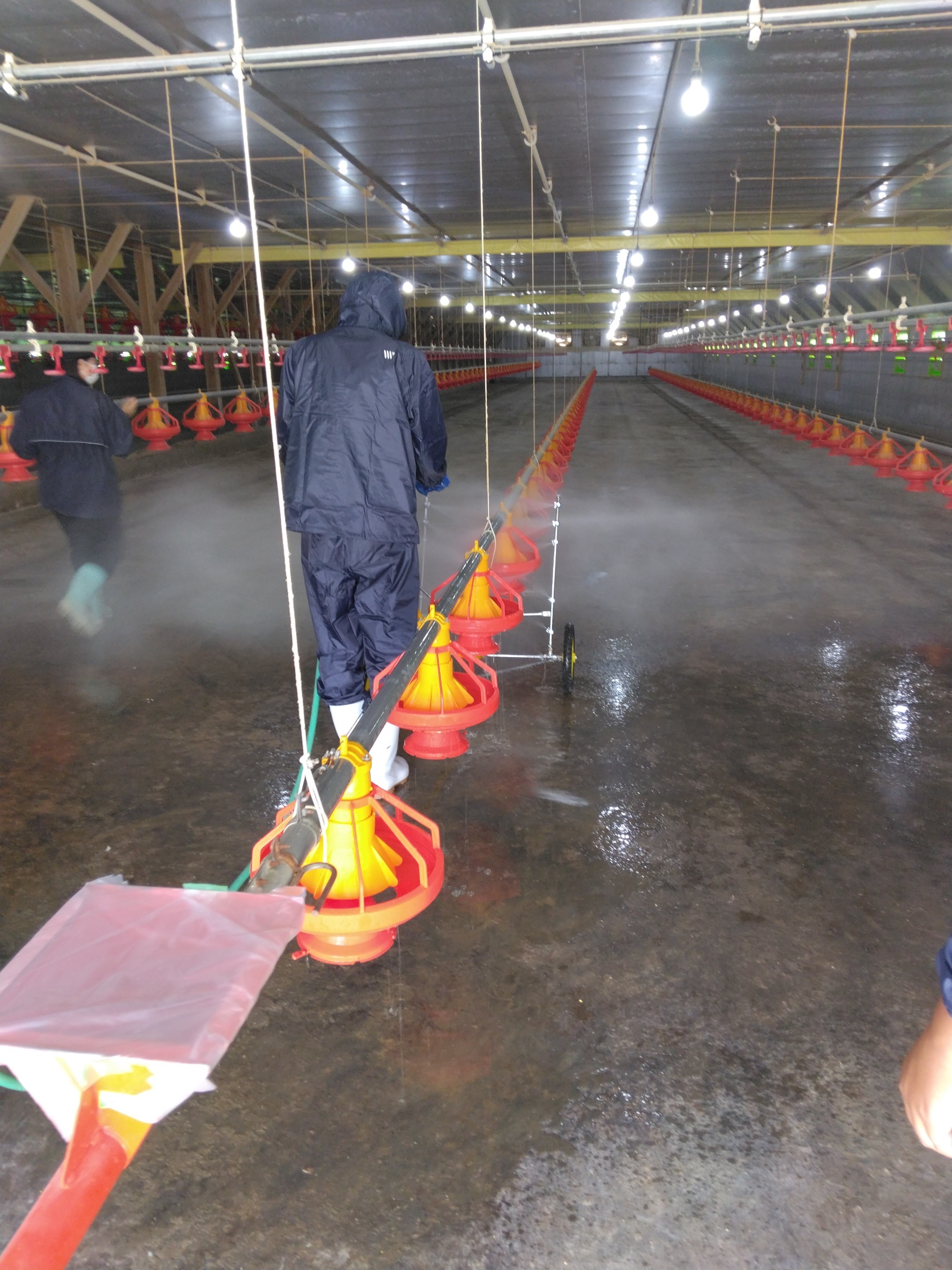鶏舎内の給餌器や給水器の洗浄を効率化するカートの実演をしてきました。